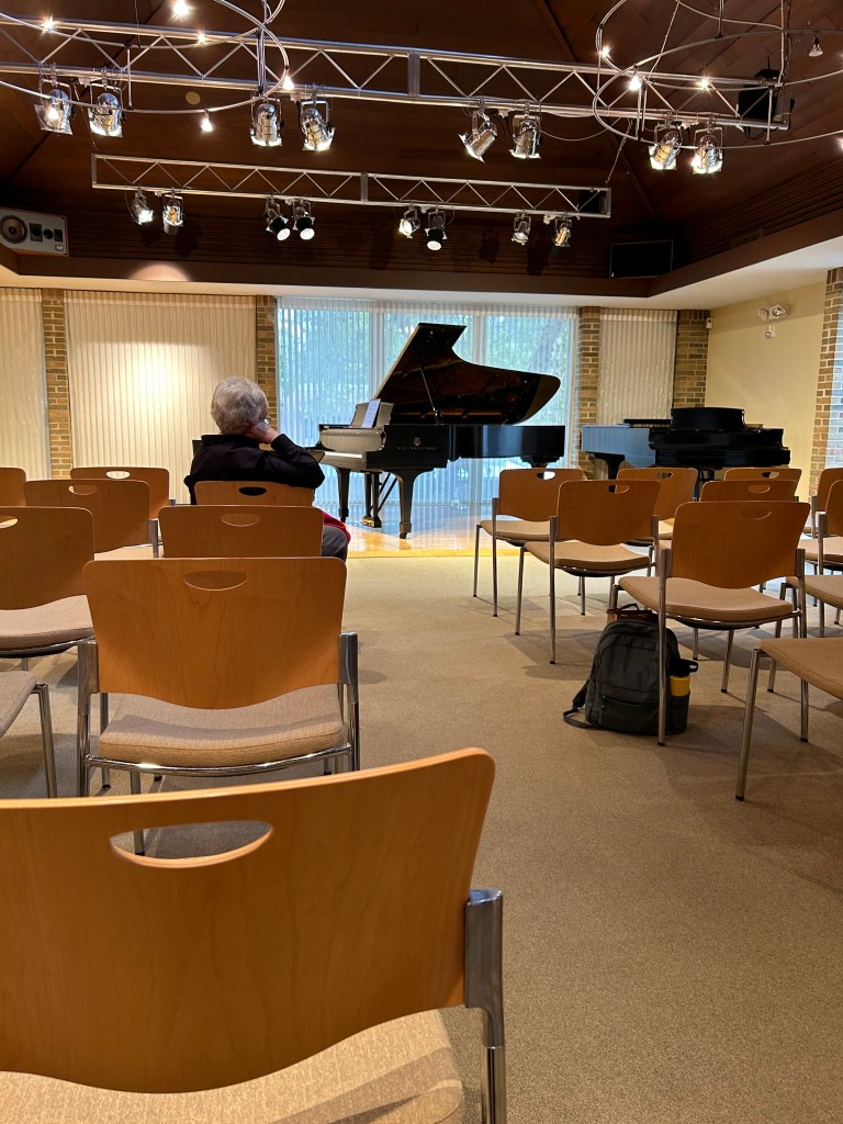 そのミーティングで詳しく説明されたのは、アメリカのピアノ教育でよく使われているという試験形式のオーディションの話だった。これはコンクール形式が多い日本にはあまりないもので結構わかりにくい。オーディションを行う団体はいくつもあるようで、5つ紹介された。大手ピアノ教本の版元が開催しているもの、州規模のもの、特定の音楽学校が開催しているものなど、それぞれ特色があり、課題もアメリカの作曲家の作品を弾かせるところや、気楽に受けられるところ、難易度が高いところなどさまざまである。だが、大体において共通しているのはまずレベル別に分かれているところ、それからこれが面白いと思うのが、実技以外に音楽理論や聴音の試験もパッケージングされているところが多いことである。これは実技しか見ない日本のコンクールとはずいぶん違うなと思った。考えてみれば日本のソルフェージュは受ける学校によって形式が違うことが多く、「芸大和声」とか「桐朋のソルフェ」とか学校ごとに学習内容がやや違ったように思う。アメリカの場合は音楽科も多いのでそこをある程度統一しようということかもしれない(ただアメリカの聴音レベルは衝撃的に低いので、どうしてここでやっているのに…?という気持ちになった。逆に音楽理論とかは強いけどね!)。そして採点は絶対評価みたいだ。アメリカっぽい。一定の点数以上取れば州大会、全国大会、みたいなものを設けている団体もあれば、トロフィー的なご褒美が用意される団体もあるらしい。ある程度の点数をとれば、音楽科でなくても大学入試などで有利に働く場合もあるようで、そういう意味でも受験者が多いらしい。これもアメリカっぽい。こういった中から自分や生徒さんの需要に合うところを選んでいくわけだ。